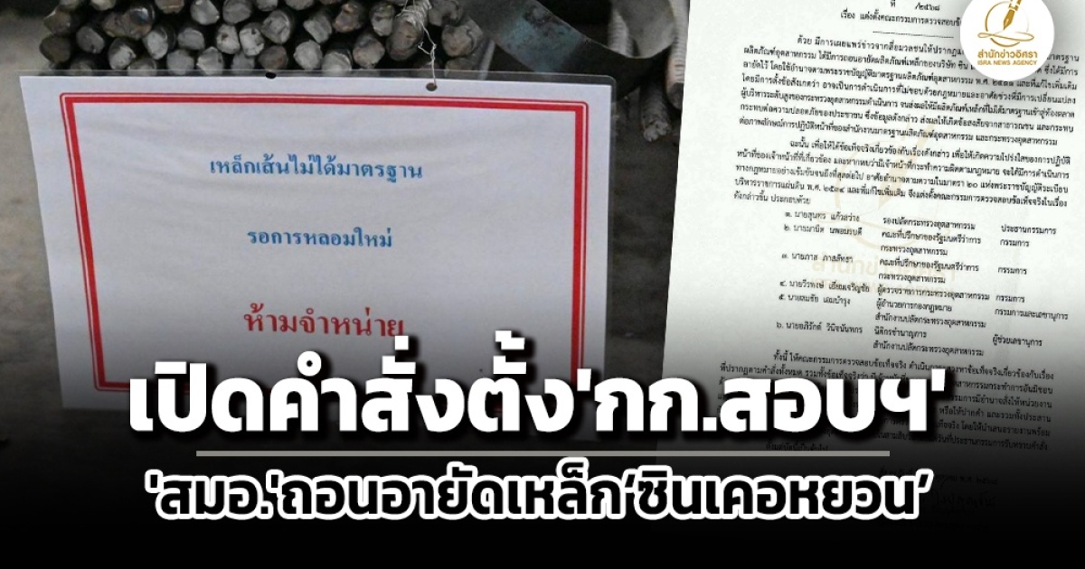 เปิดคำสั่ง ‘รมว.อุตสาหกรรม’ แต่งตั้ง ‘คณะกรรมการตรวจสอบข้อเท็จจริงฯ’ ปม ‘สมอ.’ ถอนอายัดเหล็ก‘ซินเคอหยวน’ 4.1 หมื่นเส้น ‘รองปลัดกระทรวงอุตฯ’ เป็นประธานฯ ส่ง ‘2 ที่ปรึกษา รมว.’ นั่ง กรรมการ ขีดเส้นส่งผลสอบฯภายใน 30 วัน