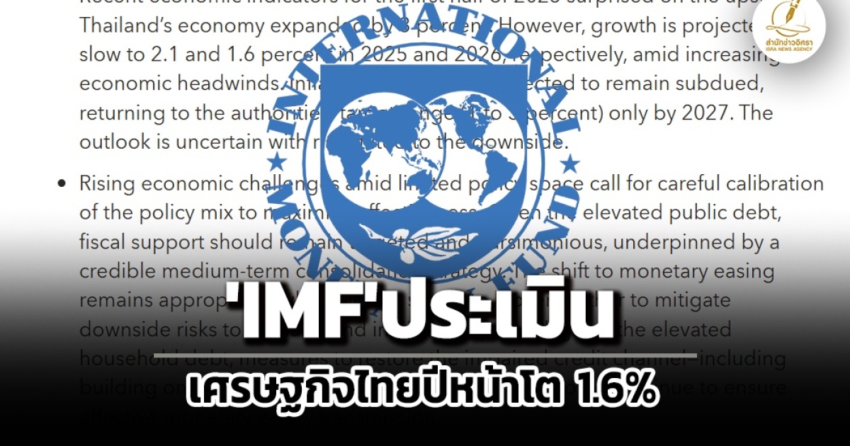IMF ประเมินเศรษฐกิจไทยปี 68 โต 2.1% ส่วนปีหน้าโต 1.6% ท่ามกลางปัจจัยเสี่ยง แนะทางการไทยใช้นโยบายการคลังแบบ ‘เฉพาะจุด-ระมัดระวัง’ ชี้ ‘นโยบายการเงิน’ อาจผ่อนคลายได้เพิ่มเติม