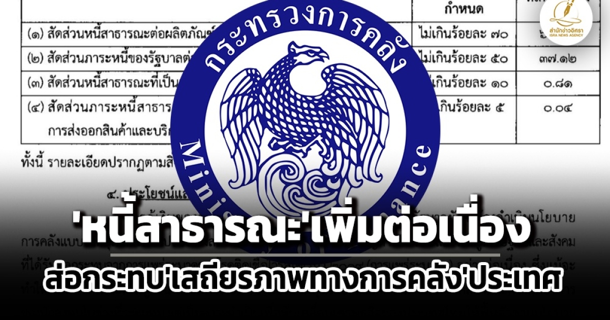 ‘คลัง’เผย‘ภาระหนี้รบ.ต่อประมาณการรายได้’พุ่ง 42.47%-‘หนี้สาธารณะ/จีดีพี’แตะ 64.59%