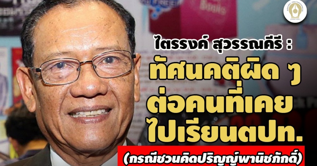 หมายเหตุสำนักข่าวอิศรา (www.isranews.org) : เมื่อวันที่ 25 เมษายน นายไตรรงค์ สุวรรณคีรี อดีตรองนายกรัฐมนตรี กรรมการสภาที่ปรึกษาพรรคประชาธิปัตย์ ได้โพสต์ข้อเขียน เรื่อง กรณีชวนคิดปริญญ์พานิชภักดิ์ ผ่านเฟซบุ๊กส่วนตัว ชื่อว่า "ดร. ไตรรงค์ สุวรรณคีรี"