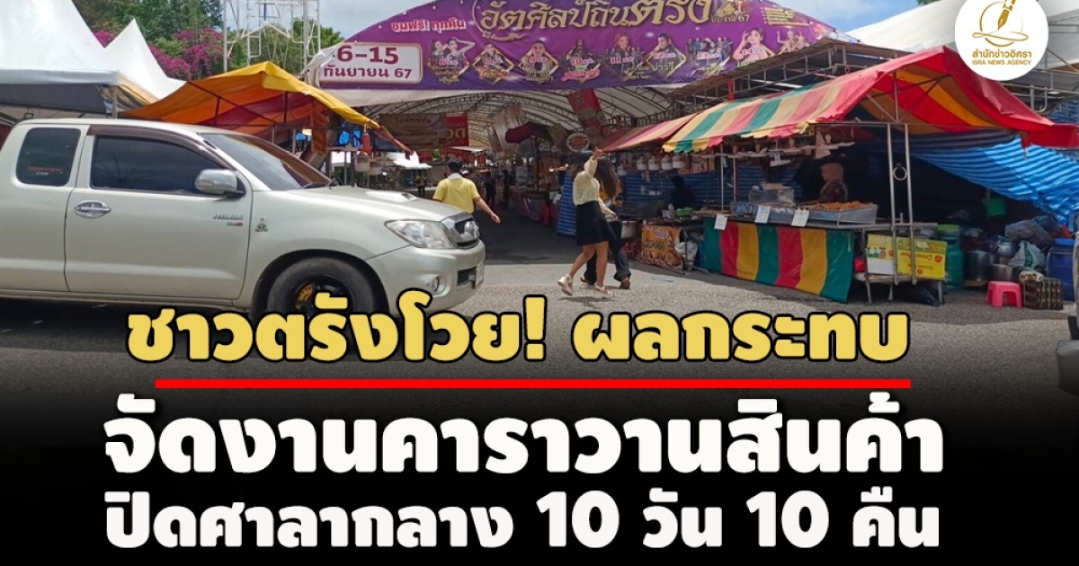 สำนักข่าวอิศรา (www.isranews.org) รายงานว่า เมื่อวันที่ 6 ก.ย.2567 ได้เกิดกระแสวิพากษ์วิจารณ์จากประชาชนจังหวัดตรังถึงการจัดงาน “ส่งเสริมภูมิปัญญาท้องถิ่น อัตศิลป์ถิ่นตรัง” ระหว่างวันที่ 6-15 กันยายน 2567 บริเวณหน้าศาลากลางจังหวัดตรัง 10 วัน 10 คืน โดยสำนักงานพัฒนาชุมชนจังหวัดตรัง ว่า จะทำให้เกิดผลกระทบอย่างมาก ทั้งเรื่องที่จอดรถ และสภาพรถติดบริเวณรอบศาลากลางเชื่อมต่อไปถึงเขตเมืองทับเที่ยง จากเดิมการจราจรก็ติดขัดอยู่แล้วจากการก่อสร้างต่าง ๆ ที่ยังไม่แล้วเสร็จบริเวณศาลากลาง ทั้งโครงการก่อสร้างหอประชุมจังหวัดตรัง โดยเฉพาะโครงการก่อสร้างจัตุรัสเมืองตรังบริเวณหอนาฬิกาตรัง เป็นต้น อีกทั้งศาลากลางจังหวัดตรังไม่เคยมีผู้บริหารอนุมัติให้ใช้จัดงานมานานแล้วเนื่องจากผลกระทบข้างต้น ส่วนใหญ่งานคาราวานสินค้าจะไปจัดที่สนามกีฬาทุ่งแจ้ง ซึ่งมีพื้นที่กว้างและอยู่ชานเมืองมากกว่า การจัดงานใจกลางเมืองเช่นนี้จึงเกิดมีข้อสงสัยว่าด้วยเหตุผลใด และอยากให้หน่วยงานที่เกี่ยวข้องเข้าไปตรวจสอบด้วย โดยเฉพาะการเรียกเก็บค่าเช่าที่ที่มีการซอยเป็นหลายร้อยร้าน ซึ่งเป็นพื้นที่ราชการหรือที่ดินธนารักษ์โดยเรียกเก็บจากบรรดาผู้ค้าชอบด้วยกฎหมายหรือไม่ เงินที่ได้เข้าหลวงหรือไม่อย่างไร