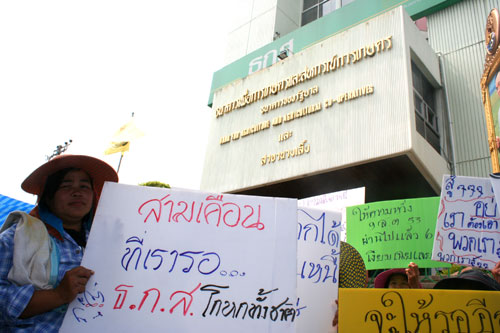 เกษตรกรรราชบุรี สุพรรณ สระบุรี 120 คน ชุมนุมจี้เร่งปรับโครงสร้างหนี้จากความล้มเหลวของโครงการเกษตรกรพันธุ์ใหม่ ผู้ช่วย ผจก.ธกส.รับปากชง ก.คลังฯภายใน 4 มี.ค. พนักงาน ธกส.-ประชาชนอุดหนุนผลิตผลชาวบ้านคับคั่ง