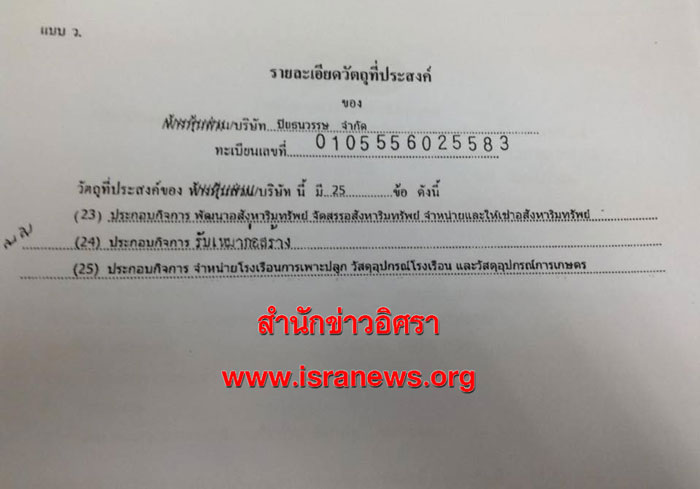 เพื่อขยายความให้ชัดขึ้น สำนักข่าวอิศรา www.isranews.org ตรวจสอบข้อมูลบริษัทดังกล่าวให้สาธารณชนทราบ ดังนี้