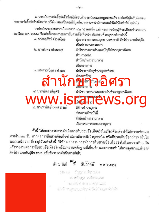 ล่าสุด สำนักข่าวอิศรา www.isranews.org ตรวจสอบข้อมูลคำสั่งแต่งตั้งคณะกรรมการสืบสวนข้อเท็จจริงกรณีนี้ พบว่า มีการระบุสาเหตุสำคัญที่ทำให้กรมอุทยานฯ ต้องแต่งตั้งคณะกรรมการสืบสวนเรื่องนี้ มาจากปัญหาเรื่องแหล่งเงินที่นำมาใช้