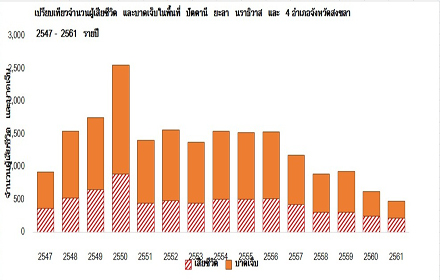 ขอบคุณ : หน่วยงานความมั่นคงในพื้นที่เอื้อเฟื้อกราฟฟิกสถิติความสูญเสียตลอด 15 ปีไฟใต้