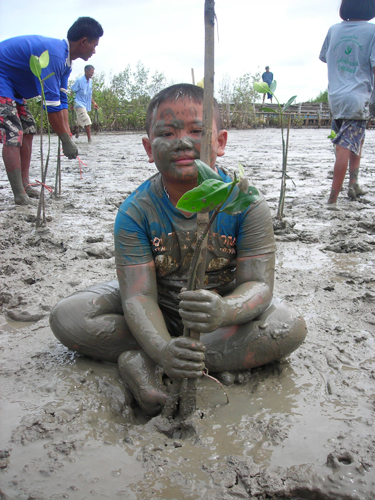 เพราะในวันนี้ พวกเขาได้เห็นภาพที่น่ายินดีว่าแผ่นดินที่ได้จากการดักตะกอนเรี่มมีความหนาแน่นและแข็งแรงสามารถลงไปช่วยกันปลูกต้นโกงกางจนเกิดเป็นพื้นที่ป่าชายเลน ธรรมชาติที่อุดมสมบูรณ์เริ่มกลับคืนมาภายใต้พื้นที่สงบสุขรอบเขตวัด