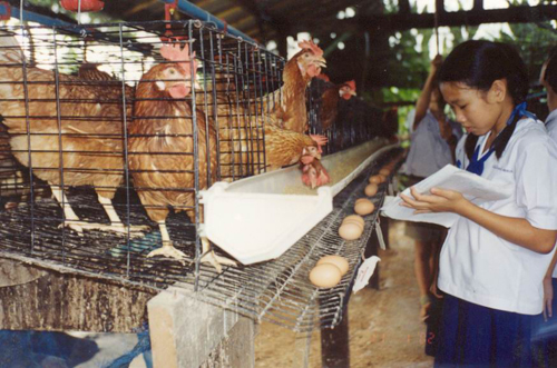 “อีกโครงการหนึ่งคือน้ำมันมะพร้าว กาบที่เหลือนำมาแช่น้ำถักเป็นพรมเช็ดเท้า ผลิตโดยนักเรียนและผู้ปกครองส่งขายไปตามหมู่บ้าน ซึ่งทุกกิจกรรมจะโยงไปถึงการวัดผลโดยดูจากมาตรฐานตัวชี้วัด คือหากเป็นช่วงชั้นที่ 1 ต้องพึ่งตนเองได้โดยใช้หลักปรัชญาเศรษฐกิจพอเพียงด้วย ส่วนช่วงชั้นที่ 2 ต้องพึ่งตนเองได้ อาศัยปรัชญาในการดำเนินชีวิตประจำวันและถ่ายทอดให้ชุมชนได้”