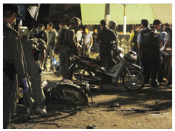 สำหรับเหตุมอเตอร์ไซค์บอมบ์ย่านตลาดสดกลางเมืองนั้น เพิ่งเกิดขึ้นที่ จ.ปัตตานี เมื่อเวลา 07.40 น.วันศุกร์ที่ 4 ธ.ค.ที่ผ่านมา บริเวณหลังตลาดนัดเทศวิวัฒน์ 2 ในเขตเทศบาลเมืองปัตตานี มีผู้ได้รับบาดเจ็บ 4 ราย เป็นทหาร 2 นายและชาวบ้านอีก 2 ราย