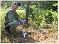 ทั้งนี้ ที่เกิดเหตุเป็นทางโค้งหักศอก ข้างทางเป็นเนินเขาและสวนเงาะ พบรถกระบะยี่ห้อเชฟโรเลต สีบรอนซ์ทอง ไม่ติดแผ่นป้ายทะเบียน ซึ่งเป็นของทหาร สภาพถูกยิงเป็นรูพรุน และยังมีรถจักรยานยนต์ล้มคว่ำอยู่อีก 2 คัน และมีปลอกกระสุนปืนตกอยู่เป็นจำนวนมาก จึงเก็บไว้เป็นหลักฐาน