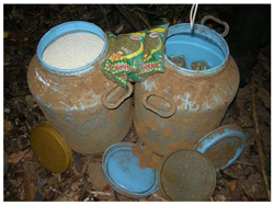 2. เสบียงของกลุ่มผู้ก่อความไม่สงบซึ่งฝังไว้ใต้ดินบนเทือกเขาบูเก๊ปิ ต.ปะแต อ.ยะหา จ.ยะลา (ภาพโดย อะหมัด รามันห์สิริวงศ์ ผู้สื่อข่าวประจำจังหวัดยะลา)