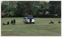 บรรยายภาพ : พล.ต.ท.พีระ พุ่มพิเชฏฐ์ ผู้บัญชาการตำรวจจังหวัดชายแดนภาคใต้ พร้อมด้วย นายอภินันท์ ซื่อธานุวงศ์ รองผู้ว่าราชการจังหวัดยะลา เดินทางไปร่วมชมการสาธิตการปฏิบัติการจู่โจมของตำรวจตระเวนชายแดนที่ 44 โดยมีการจำลองเหตุการณ์ยิงปะทะกับกลุ่มก่อความไม่สงบด้วย ที่บริเวณสนามเฮลิคอปเตอร์ หน้ากองบังคับการตำรวจตระเวนชายแดนที่ 44 ค่ายพญาลิไท หมู่ 1 ต.บุดี อ.เมือง จ.ยะลา