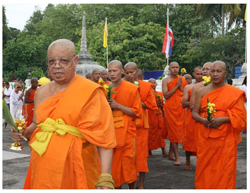1-4 พุทธศาสนิกชนพร้อมใจกันเวียนเทียนเนื่องในวันอาสาฬหบูชาตั้งแต่ช่วงก่อนค่ำ ที่วัดเมืองยะลา อ.เมือง จ.ยะลา ท่ามกลางการดูแลความปลอดภัยอย่างเข้มงวดของเจ้าหน้าที่ฝ่ายความมั่นคง (ภาพโดย อะหมัด รามันห์สิริวงศ์)