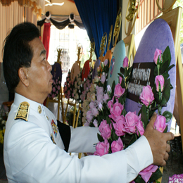 ในหลวง พระราชินี พระราชทานพวงมาลาหน้าศพ