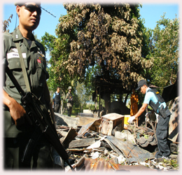 บรรยายภาพ : เจ้าหน้าที่นำกำลังเข้าตรวจจุดเกิดเหตุคนร้ายไม่ต่ำกว่า 10 คน บุกสังหารชาวไทยพุทธ 4 รายและเผาบ้านอีก 3 หลัง ในพื้นที่บ้านฮูแตยือลอ หมู่ 6 ต.บาเร๊ะใต้ อ.บาเจาะ จ.นราธิวาส เมื่อวันอาทิตย์ที่ 19 ก.ย.ที่ผ่านมา