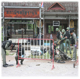 ใต้ยังป่วนรายวัน คนร้ายกดบึ้ม "มอเตอร์ไซค์บอมบ์" หน้าสถานีรถไฟรามัน ตำรวจ-ชาวบ้านบาดเจ็บ 4 ราย ระอุยิงสองพี่น้องวัยแค่ 17 กับ 14 ปีหวิดสิ้นชื่อที่เมืองยะลา แค่ 3 วันเด็กนักเรียนตกเป็นเหยื่อกระสุน 4 คน อีกรายประกบยิง อส.บันนังสตา ปางตาย ส่วนที่ปัตตานียิงรายวัน 3 รายซ้อน ขณะที่ผู้ใหญ่บ้านรือเสาะหนีข้ามจังหวัดยังไม่พ้น ถูกตามล่าสังหารคาบ้านญาติ ด้านนายกฯเจื้อยแจ้วเดินหน้าขยายสัมพันธ์โลกมุสลิม