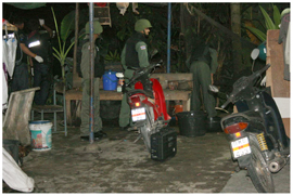 บรรยายภาพ : เจ้าหน้าที่นำกำลังเข้าตรวจสอบเหตุกลุ่มวัยรุ่นปา "ไปป์บอมบ์" ถล่มด้านหลังบ้านเช่าใกล้บ้านของ นายวันมูหะมัดนอร์ มะทา อดีตประธานรัฐสภา ในเขตเทศบาลนครยะลา โชคดีไม่มีผู้ใดได้รับบาดเจ็บ เบื้องต้นตำรวจสันนิษฐานเป็นเหตุขัดแย้งส่วนตัว (ภาพโดย อะหมัด รามันห์สิริวงศ์)