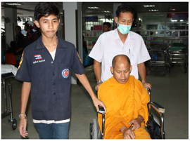 บรรยายภาพ : เจ้าหน้าที่โรงพยาบาลศูนย์ยะลานำ พระสะอาด เขมวีโร เจ้าอาวาสวัดหัวสะพาน เข้ารักษาอาการบาดเจ็บ หลังคนร้ายก่อเหตุยิงชุด รปภ.พระ เสียชีวิต 2 นาย เมื่อวันเสาร์ที่ 18 ธ.ค.ที่ผ่านมา