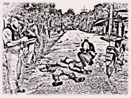 บรรยายภาพ : เจ้าหน้าที่กำลังตรวจจุดเกิดเหตุคนร้ายรัวยิงอาสาสมัครทหารพรานเสียชีวิต 2 นาย บริเวณหน้าโรงเรียนบ้านลูโบะกาเยาะ หมู่ 5 ต.เฉลิม อ.ระแงะ จ.นราธิวาส เมื่อวันที่ 23 ธ.ค.ที่ผ่านมา