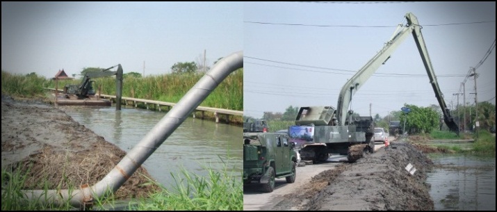 วันที่ 16 มีนาคม พลโท อุดมเดช สีตบุตร. แม่ทัพภาคที่1 เดินทางยังชุมชนปั้นทอง เขตลาดปลาเค้า ซึ่งกองพันทหารช่างที่ 1 รักษาพระองค์กำลังดำเนินการขุดลอกคูคลองในพื้นที่ จำนวน 8 คลองอาทิ คลองแพเขียวและคลองลำไผ่ ซึ่งมีความคืบหน้าไปมากกว่า 40 เปอร์เซ็นแล้ว