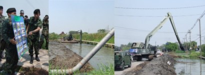 ขณะที่ทางด้านกองบัญชาการกองทัพไทยได้มีการดำเนินโครงการฟื้นฟูป้องกันและแก้ไขปัญหาอุทกภัยโดยหน่วยบัญชาการทหารพัฒนา ใช้งบประมาณ 850 ล้านบาท ในการดำเนินการทั้งการฟื้นฟูแหล่งน้ำในพื้นที่ลุ่มแม่น้ำหลัก 18 จังหวัด เช่น แม่น้ำปิง วัง ยม น่าน ป่าสัก ท่าจีน และแม่น้ำเจ้าพระยา จำนวน 156 โครงการ และลุ่มแม่น้ำชุมชน จำนวน 17 ลุ่มแม่น้ำ ประกอบด้วย แม่น้ำซี มูล ลุ่มแม่น้ำภาคใต้ฝั่งตะวันออก และลุ่มแม่น้ำปัตตานี ทั้งหมด จำนวน 103 โครงการ ซึ่งขณะนี้การดำเนินการมีความกว้าหน้าไปแล้ว 37.99 เปอร์เซ็นต์