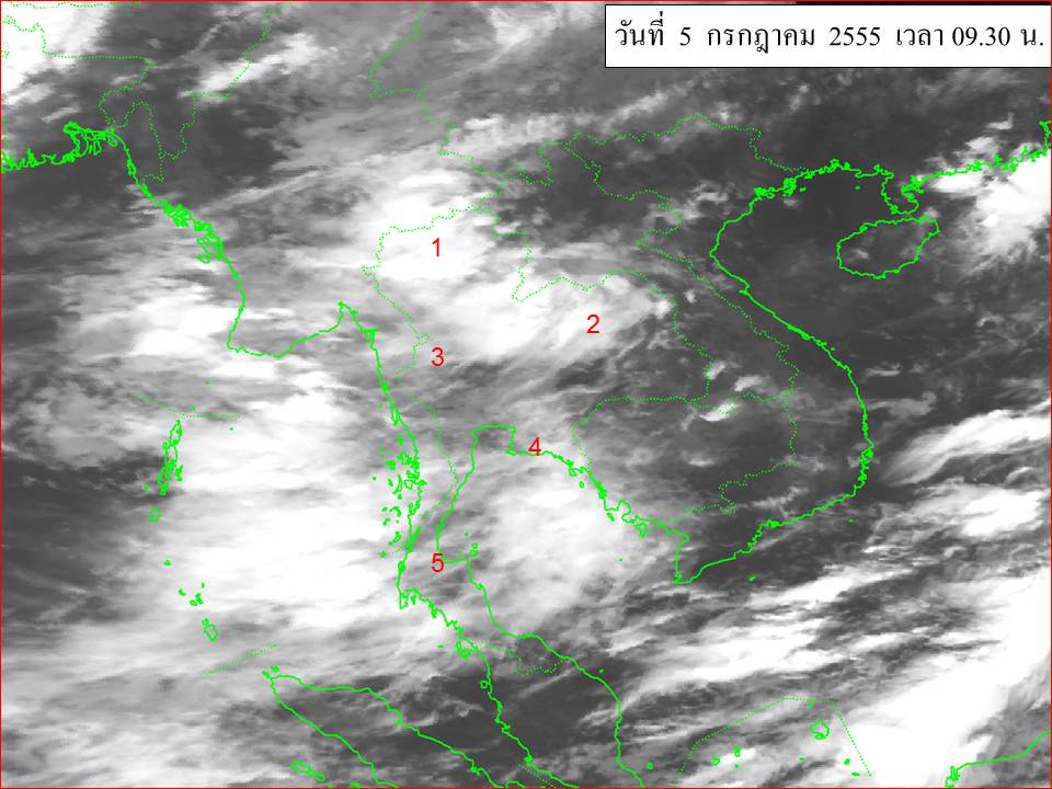 กลุ่มเมฆที่ 5 :กลุ่มเมฆฝนปกคลุมภาคใต้โดยมีฝนฟ้าคะนองปกคลุมภาคใต้ ชายฝั่งทะเลอันดามันและบริเวณชายฝั่งอ่าวไทย