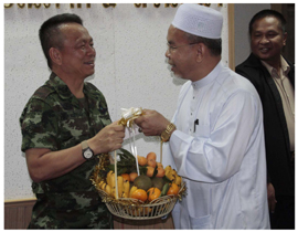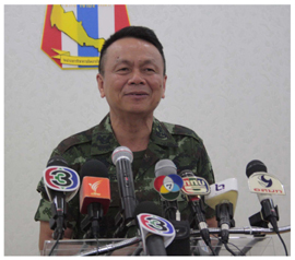 บรรยายภาพ : พล.ท.อุดมชัย ธรรมสาโรรัชต์ แม่ทัพภาคที่ 4 เปิดแถลงข่าวพร้อมรับมอบกระเช้าดอกไม้จากผู้นำศาสนาและกลุ่มพลังมวลชนในพื้นที่ (ภาพโดย อะหมัด รามันห์สิริวงศ์)