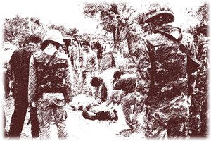 บรรยายภาพ : เจ้าหน้าที่กำลังชันสูตรศพชายที่ถูกฆ่า แล้วนำศพทิ้งไว้บริเวณหน้าประตูสุสาน มูลนิธิแม่กอเหนี่่ยว ต.บุดี อ.เมืองยะลา (ภาพโดย อะหมัด รามันห์สิริวงศ์ และผ่านการตกแต่งโดยฝ่ายศิลป์ ทีมข่าวอิศรา)