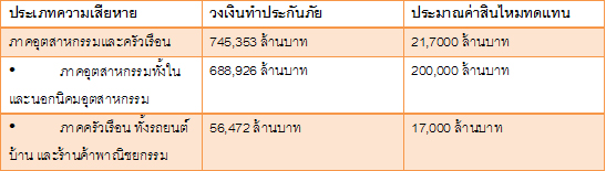 ความเสียหายภาคธุรกิจและครัวเรือนที่มีการทำประกันภัย
