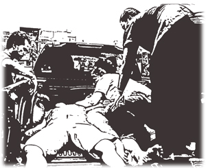 บรรยายภาพ : ชาวบ้านกำลังลำเลียงคนเจ็บที่ถูกคนร้ายจ่อยิงกลางตลาดนัด ต.ท่าธง อ.รามัน จ.ยะลา ขึ้นรถส่งโรงพยาบาล (ภาพโดย อะหมัด รามันห์สิริวงศ์)