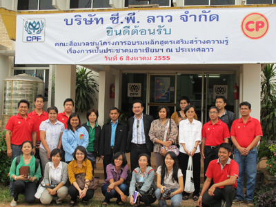 เมื่อเร็ว ๆ นี้ ทำนอง พลทองมาก รองกรรมการผู้จัดการบริษัท ซี.พี.ลาว จำกัด (บริษัทลูกในเครือซีพีเอฟ) ให้การต้อนรับคณะสื่อมวลชนไทยใน “หลักสูตรเสริมสร้างความรู้เรื่องการเป็นประชาคมอาเซียนในปี 2558 สำหรับสื่อมวลชนไทย” เนื่องในโอกาสศึกษาดูงานภาคองค์กรสื่อและภาคเอกชนประเทศลาว – เวียดนาม จัดโดยสมาคมนักข่าวนักหนังสือพิมพ์แห่งประเทศไทย โดยการสนับสนุนจาก บริษัท เจริญโภคภัณฑ์อาหาร จำกัด (มหาชน)