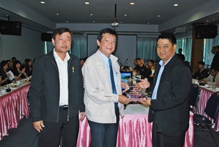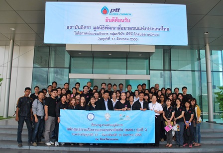 นายประสงค์ เลิศรัตนวิสุทธิ์ ผู้อำนวยการบริหาร สถาบันอิศรา และนายชวรงค์ ลิมป์ปัทมปาณี นายกสมาคม นักข่าวนักหนังสือพิมพ์แห่งประเทศไทย และผู้อำนวยการหลักสูตรการสื่อสารมวลชนระดับต้น (กสต.) รุ่นที่ 3 นำคณะผู้อบรมหลักสูตร กสต.รุ่นที่ 3 เข้ารับฟังบรรยายพร้อมเยี่ยมชมการดำเนินงานธุรกิจปิโตรเคมีและการกลั่นครบวงจร ที่มีขนาดใหญ่ที่สุดในประเทศไทยของบริษัท พีทีที โกลบอล เคมิคอล จำกัด (มหาชน) ในโอกาสเดินทางศึกษาดูงานส่วนภูมิภาค ระหว่างวันศุกร์ที่ 17 - วันอาทิตย์ที่ 19 สิงหาคม 2555 ณ จังหวัดระยอง จัดโดยสถาบันอิศรา มูลนิธิพัฒนาสื่อมวลชนแห่งประเทศไทย โดยการสนับสนุนของสำนักงานกองทุนสนับสนุนการสร้างเสริมสุขภาพ (สสส.) ทั้งนี้มี นายเสขสิริ ปิยะเวช ผู้จัดการฝ่ายหน่วยงาน นโยบาย SHE องค์กร , นายประภาศ แก้วโมรา ผู้จัดการส่วนหน่วยงานวางแผนปฏิบัติการ และคณะผู้บริหาร ร่วมต้อนรับ