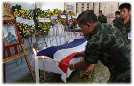 2 พล.ต.โชค เพิกโสภณ รองผู้อำนวยการรักษาความมั่นคงภายในภาค 4 (ผอ.รมน.ภาค 4) เป็นประธานในพิธีรดน้ำศพ พลทหารชูชาติ แก้วงศ์หิว อายุ 22 ปี สังกัดหน่วยเฉพาะกิจยะลา 13 ที่ถูกคนร้ายยิงเสียชีวิตขณะปฏิบัติหน้าที่ในท้องที่ อ.กรงปินัง จ.ยะลา