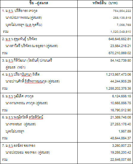 ทรัพย์สินของหม่อมราชวงศ์ที่ยื่นแสดงต่อ ป.ป.ช.
