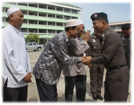 2 พล.ต.อ.อดุลย์ แสงสิงแก้ว รองผบ.ตร. ทักทายผู้บริหารโรงเรียนธรรมวิทยามูลนิธิ อ.เมือง จ.ยะลา ในโอกาสเดินทางไปมอบทุนการศึกษาให้กับนักเรียน