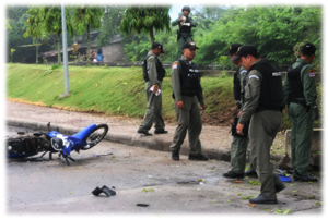 ทั้งนี้ จุดเกิดเหตุอยู่ที่บริเวณสามแยกใต้สะพานลอด พบรถจักรยานยนต์ยี่ห้อฮอนด้า รุ่นเวฟ 125 สีน้ำเงิน ไม่ติดแผ่นป้ายทะเบียน ซึ่งเป็นของทหาร ล้มตะแคงอยู่ริมถนน สภาพรถเสียหายเกือบทั้งคัน ส่วนจุดระเบิดอยู่บริเวณขอบทางเท้า แรงระเบิดทำให้เกิดเป็นหลุมลึกครึ่งฟุต กว้างกว่า 1 ฟุต มีสะเก็ดระเบิดและเศษชิ้นส่วนวงจรไฟฟ้ากระจายเกลื่อน จึงเก็บรวบรวมไว้เป็นหลักฐาน