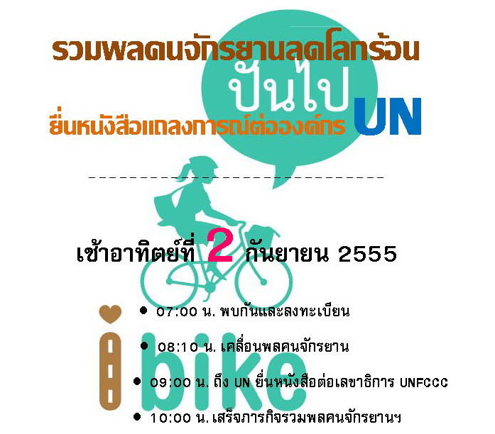 "รวมพลคนจักรยานลดโลกร้อน ยื่นหนังสือแถลงการณ์ต่อองค์กร UN"