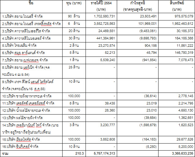 เพราะฉะนั้น เป็นไปได้ธุรกิจที่ปรากฏในเมืองไทย 16 บริษัท ไม่รวมการถือครองสินทรัพย์ในต่างประเทศ