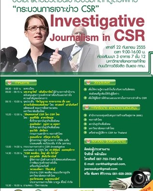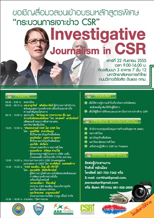 ขอเชิญสื่อมวลชนร่วมอบรม"กระบวนการเจาะข่าวInvestigative Journalism in CSR”