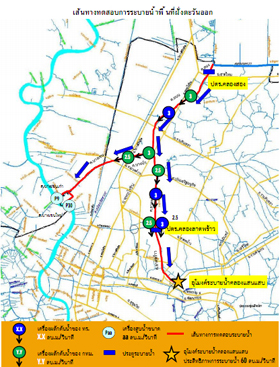 ทั้งนี้ เมื่อเวลา 22.15 น. ดร.วัลลภ สุวรรณดี รองผู้ว่าราชการกรุงเทพมหานคร ดูแลสำนักการะบายน้ำ ได้หารือร่วมกับ ดร.รอยล จิตรดอน ประธานคณะอนุกรรมการติดตาม วิเคราะห์สถานการณ์น้ำและจัดสรรน้ำ ในคณะกรรมการบริหารจัดการน้ำและอุทกภัย (กบอ.) ซึ่งมีข้อสรุปว่า จะไม่มีการทดสอบประสิทธิภาพการระบายน้ำในวันที่ 7 ก.ย.ตามแผนที่กำหนด เนื่องจากระดับน้ำในประตูระบายน้ำคลองสองสูงเกินกว่าที่ควรจะเป็น อย่างไรก็ตาม กทม. ได้ทำการทดสอบการทำงานของเครื่องผลักดันน้ำของกทม. 3 จุดเพื่อเร่งระบายน้ำในพื้นที่ ได้แก่ บริเวณซอยลาดพร้าว 56 บริเวณถ.วิภาวดี (หน้าบริษัทยาคูลท์) และถ.ประเสริฐมนูกิจตัดคลองลาดพร้าว ซึ่งการระบายน้ำในบริเวณดังกล่าวเป็นไปด้วยความเรียบร้อย พร้อมทั้งได้มีการประสานงานระหว่าง กทม.และกบอ. อย่างดียิ่ง