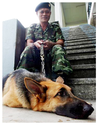 “สุนัขทหารทุกตัวกับผู้บังคับ เมื่อได้จับคู่กันแล้วก็เปรียบเสมือนเป็นบัดดี้กัน จะให้คนอื่นมานำสุนัขตัวนี้ออกไปปฏิบัติงานไม่ได้ เพราะสุนัขเป็นสัตว์ที่จำเจ้าของ ผู้บังคับสุนัขกับสุนัขจะต้องทำงานคู่กันไปตลอด จะแยกกันได้ก็ต้องให้ฝ่ายใดฝ่ายหนึ่งจากไป และหากจะเปลี่ยนผู้บังคับสุนัขรายใหม่ก็ต้องมาฝึกกันใหม่ โดยที่ผู้บังคับสุนัขรายเดิมกับผู้บังคับสุนัขรายใหม่ต้องฝึกร่วมกันอย่างน้อย 2 เดือนขึ้นไป”