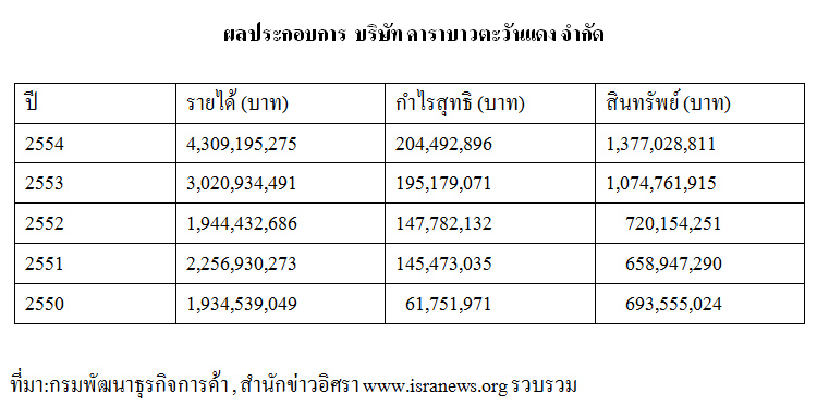 ถ้าเทียบกับปี 2553 คาราบาวแดงมีรายได้ 3,000,188,558 บาท กำไรสุทธิ 195,179,071 บาท รายได้สูงขึ้นกว่า 1,300 ล้านบาท