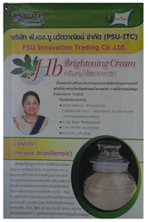 ด้าน ผศ.คำรณ พิทักษ์ ผู้อำนวยการศูนย์บ่มเพาะวิสาหกิจ มหาวิทยาลัยสงขลานครินทร์ กล่าวว่า ทาง ม.อ.ได้จัดตั้ง บริษัท พี.เอส.ยู.นวัตวาณิชย์ หรือ PSU Innovation Trading Company ด้วยทุนจดทะเบียน 1 ล้านบาท โดยมีวัตถุประสงค์เพื่อนำงานวิจัยไปใช้ประโยชน์เชิงพาณิชย์ ในส่วนของครีมหน้าใสยางพารา (Hb Brightening Cream) เป็นอีกผลิตภัณฑ์หนึ่งที่ได้รับความสนใจ ปัจจุบันผลิตออกจำหน่ายแล้ว ในขนาดบรรจุ 15 กรัม ราคาชุดละ 450 บาท และสารสกัดเอชบีเพื่อปรับปรุงสุขภาพผิว (The Hb extract for improving skin health) ขนาดบรรจุ 50 กรัม ผงแห้ง ราคา 3,000 บาท