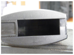 3. ภาพถ่ายช่องใส่การ์ด จีที 200 เป็นแค่ช่องกลวงโบ๋ ไม่มีจุดสัมผัสกับกลไกอิเล็กทรอนิกส์ และไม่มีแม้แต่สลักล็อคแผ่นการ์ดให้ยึดติดกับตัวเครื่อง (ภาพนี้เอื้อเฟื้อโดยชุมชนวิทยาศาสตร์หว้ากอ)
