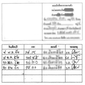 บรรยายภาพ : เอกสาร "แบบบันทึกการรายงานตัว" ของหน่วยเฉพาะกิจแห่งหนึ่งในสามจังหวัดชายแดนภาคใต้ และหลักฐานการรายงานตัวแต่ละครั้ง ซึ่งมีลายมือชื่อของเจ้าหน้าที่รับทราบทุกครั้ง แต่มีปัญหาว่าเป็นการดำเนินการที่มีระเบียบกฎหมายรองรับหรือไม่