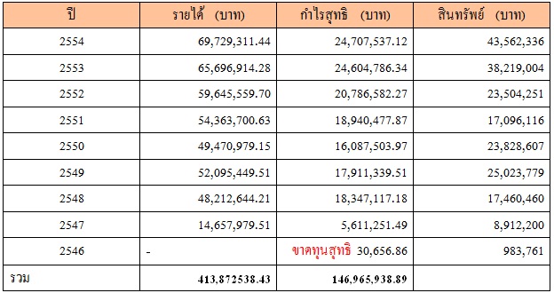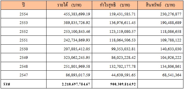 1.บริษัท ชัดถ้อยชัดคำ จำกัด รายได้รวม 413,872538.43 บาท กำไรสุทธิรวม 146,965,938.89 บาท มีเพียงปีเดียวคือปี 2546 ที่ไม่มีรายได้และขาดทุนสุทธิ 30,656.86 บาท สินทรัพย์ปี 2554 จำนวน 43,562,336 บาท หนี้สิน 17,545,037 บาท เฉพาะปี 2554 เสียภาษีเงินได้ 11,048,762.93 บาท