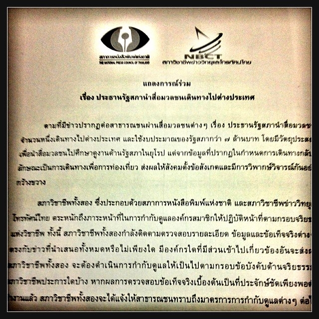 2 สภาวิชาชีพฯ ออกแถลง กรณีขุนค้อนพาสื่อทัวร์ยุโรป