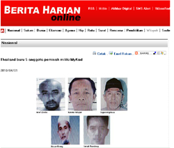 ทั้งนี้ บริตา ฮาเรียน ออนไลน์ เผยแพร่ผ่านเว็บไซต์เมื่อวันที่ 1 เม.ย.ที่ผ่านมา นำเสนอข้อมูลที่อ้างว่ามาจากแหล่งข่าวความมั่นคงของไทยที่เข้าไปสืบหาข่าวเชิงลึกในมาเลเซียว่า พลเมืองไทยทั้ง 5 คนซึ่งมีส่วนเกี่ยวข้องกับเหตุรุนแรงในสามจังหวัดชายแดนภาคใต้มาตั้งแต่ พ.ศ.2547 ได้หลบไปกบดานอยู่บริเวณชายแดนไทย-มาเลเซียในรัฐกลันตันและรัฐเปอร์ลิส (ปะลิส) โดยถือบัตรประจำตัวประชาชนมาเลเซีย หรือ "เอ็มวายก๊าด" (MyKad) และพาสปอร์ตหลายเล่มในชื่อแฝงต่างๆ กัน ทำให้สามารถเดินทางไปไหนมาไหนในมาเลเซียได้ รวมทั้งเดินทางเข้าออกประเทศได้ง่ายดายและสะดวก ซึ่งทางการไทยสืบรู้มานานแล้ว แต่ไม่ทราบว่าใช้ชื่ออะไรบ้าง ถ้าสืบทราบได้เมื่อไหร่ ทางการไทยก็จะแจ้งขอความร่วมมือจากทางการมาเลเซียให้ช่วยจับกุม เพราะถือว่าเป็นบุคคลที่เป็นอันตรายร้ายแรงต่อความมั่นคงของไทย
