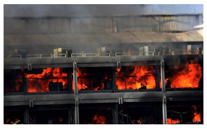 1 เพลิงที่กำลังลุกไหม้อาคารแห่งหนึ่งย่านคลองเตย ในเหตุการณ์จลาจลกลางกรุงเทพฯเมื่อวันที่ 19 พ.ค. (ภาพโดย ทวีชัย เจาวัฒนา บรรณาธิการศูนย์ภาพเนชั่น)