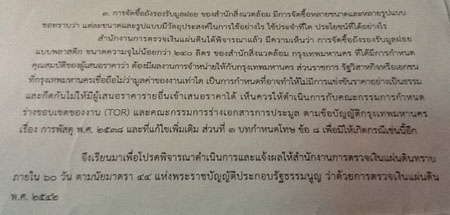 “ขอให้ผู้ว่า กทมฯ พิจารณาดำเนินการและแจ้งผลให้ สตง.รับทราบภายใน 60 วัน ตามมาตรา 44 แห่ง พรบ.ประกอบรัฐธรรมนูญ ว่าด้วยการตรวจเงินแผ่นดิน พ.ศ.2542 ด้วย” หนังสือ สตง.ระบุ