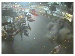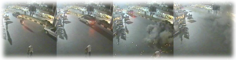 1 ภาพจากกล้องโทรทัศน์วงจรปิดแสดงนาทีระเบิดบนถนนสิโรรสหน้ามัสยิดกลางประจำจังหวัดยะลา เมื่อค่ำวันที่ 8 มิ.ย.2553
